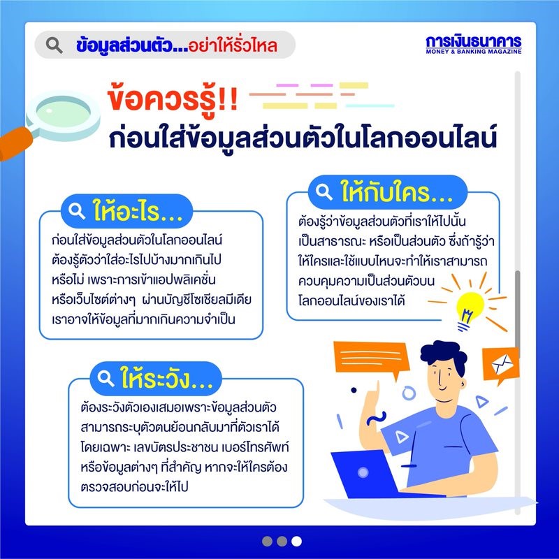 แผนก IT มีบทความสั้น ๆ ที่มีประโยชน์เกี่ยวกับการปกป้องข้อมูลส่วนตัวให้ปลอดภัย มาแบ่งปันครับ